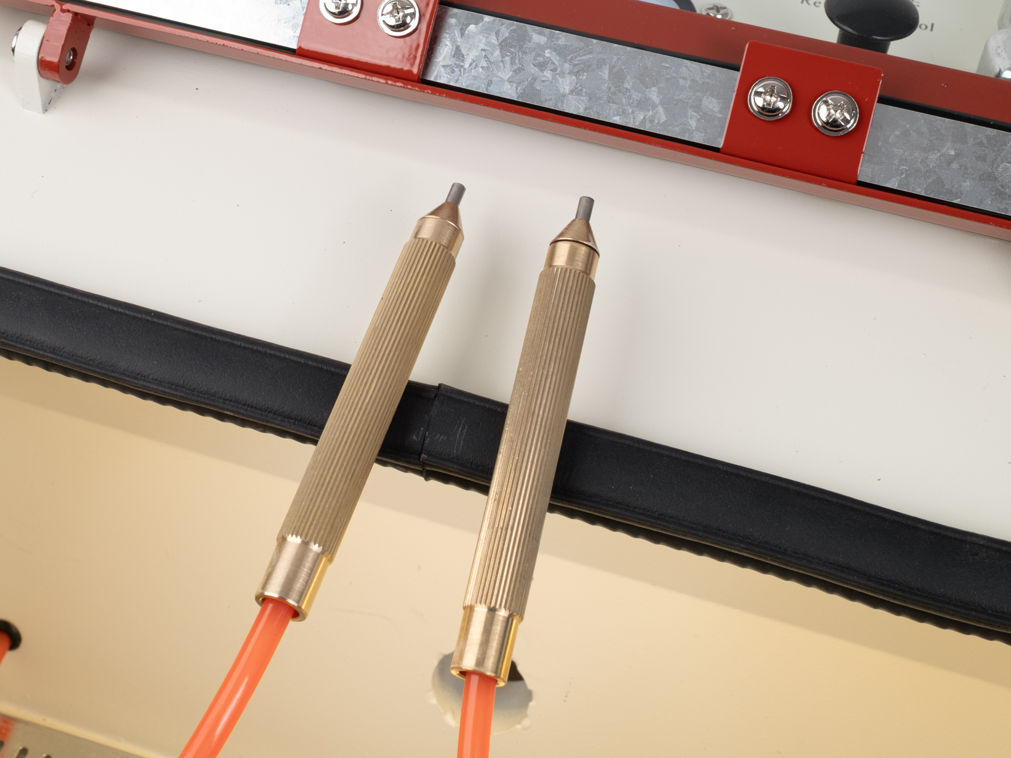 Die Bedienung ist sehr einfach und intuitiv. Nach dem Befüllen der Tanks mit Strahlmittel und dem Anschließen der Luft wählt der Benutzer mit einem Schalter aus, welchen Stift er verwenden möchte, und startet den eigentlichen Strahlvorgang mit einem Fußpedal. So bleiben beide Hände frei, um sich auf die Führung der Düse zu konzentrieren. Der Stift wird wie ein Bleistift gehalten, so dass man auch auf sehr kleinen Flächen mit hoher Präzision arbeiten kann. Die Strahlmittelmenge lässt sich über ein Ventil fein dosieren, so dass je nach Material und gewünschtem Ergebnis sowohl ein sehr sanftes Blasen als auch eine intensivere Reinigung eingestellt werden kann.