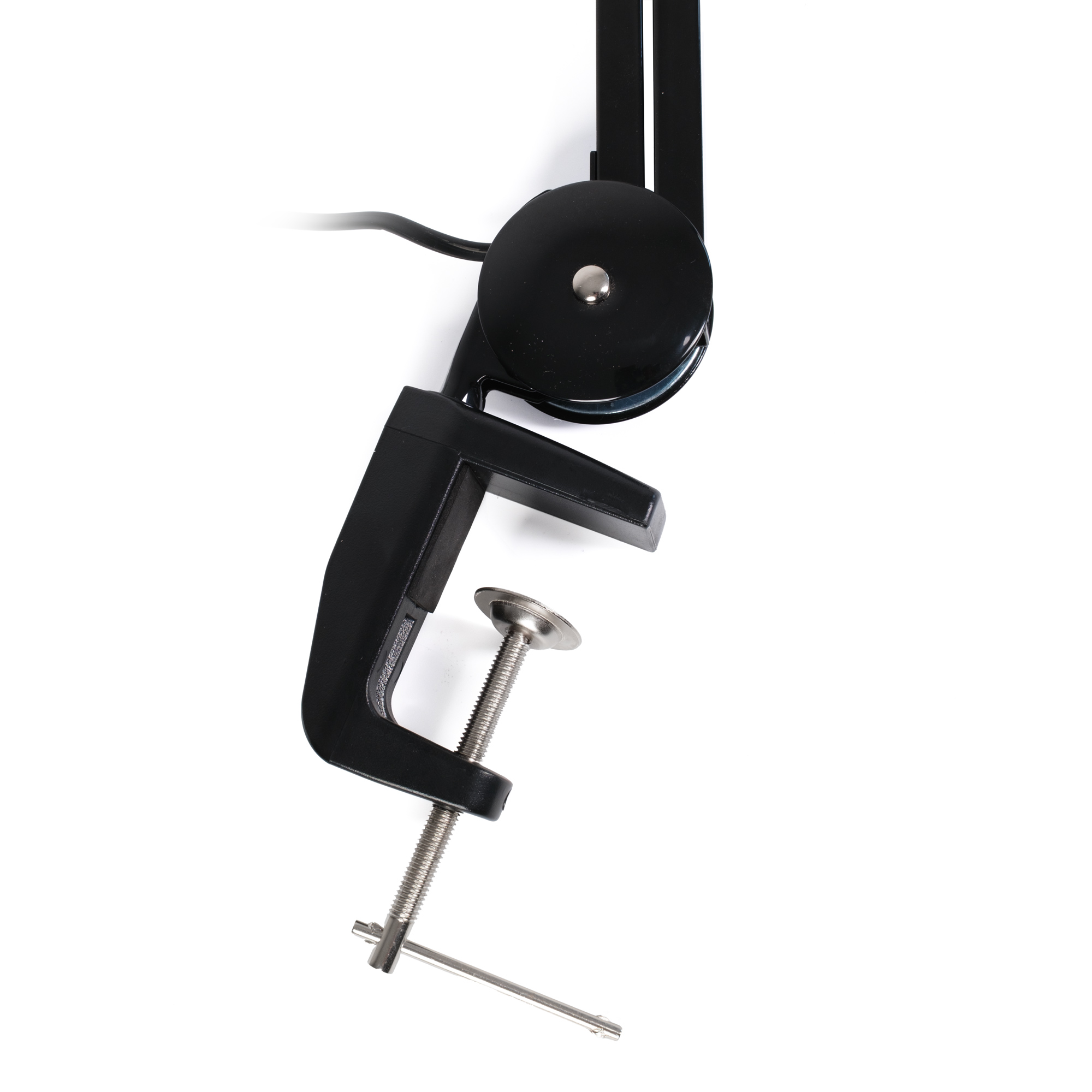 Die robuste Konstruktion mit Metallarm und -fuß sorgt für eine hohe Stabilität der Leuchte, auch wenn der Lampenarm maximal ausgefahren ist. Die Höhe der Leuchte kann von 25 bis 76 cm über der Arbeitsfläche eingestellt werden. Die Gesamtlänge des Arms beträgt 90 cm, mit einer maximalen Reichweite von bis zu 70 cm ab der Mitte der Basis. Dank dieser Flexibilität lässt sich die Leuchte bequem an die jeweiligen Arbeitsanforderungen anpassen. Die Gelenke und der Arm sind aus Metall, und in Bereichen ohne mechanische Beanspruchung werden auffällige Kunststoffe verwendet, die für ein sauberes Aussehen und einfache Wartung sorgen.